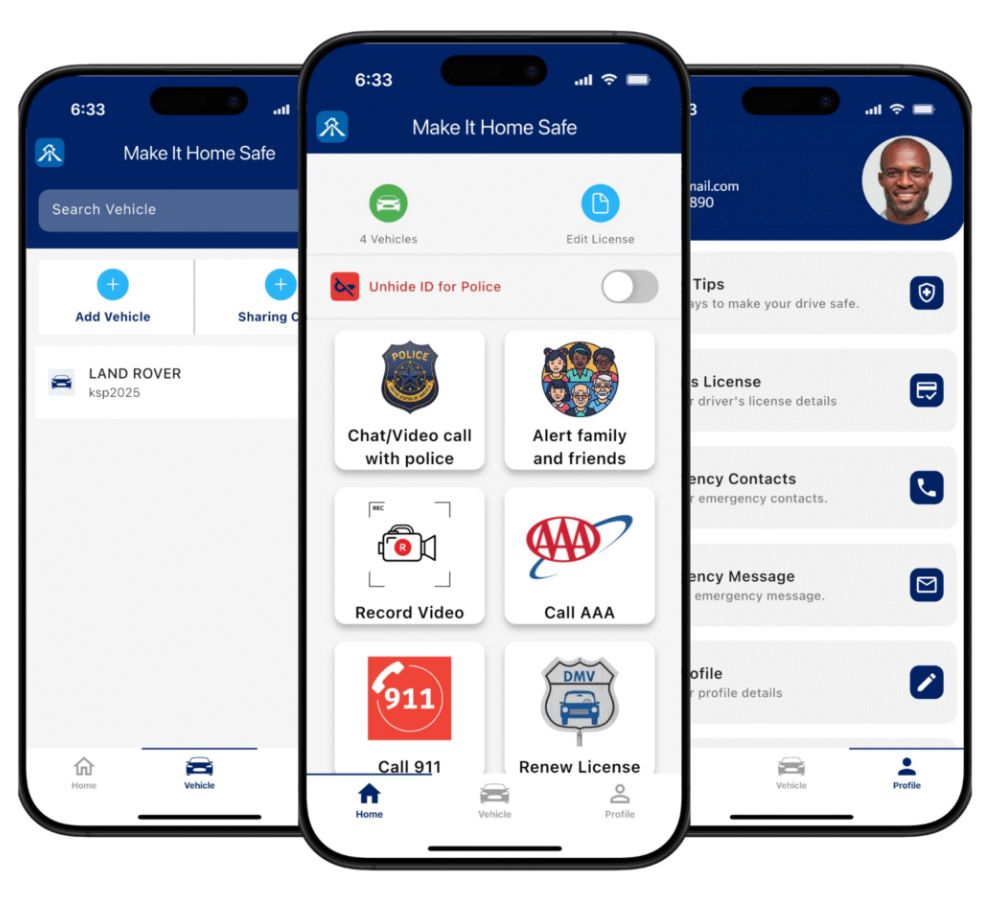 The Make It Home Safe app instantly connects drivers with loved ones and law enforcement so everyone can make it home safe from a traffic stop.